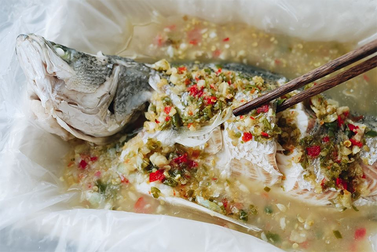 Deep Fried Sea bass Topped Three Flavored Sauce